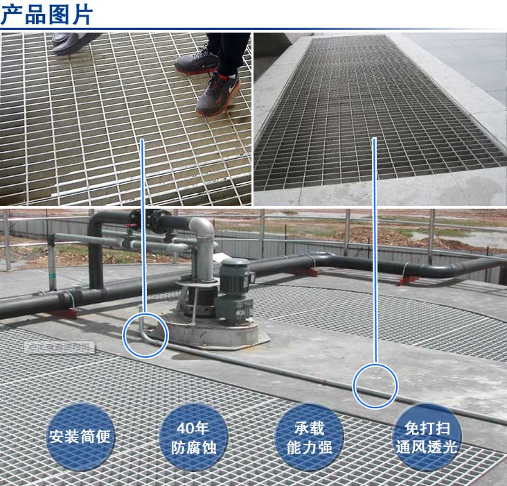 (6)采用高強度碳鋼,使鋼格柵板具有很高的強度:強度和韌性遠高于鑄鐵,可用于碼頭,機場(chǎng)等大跨度和重載荷的環(huán)境。